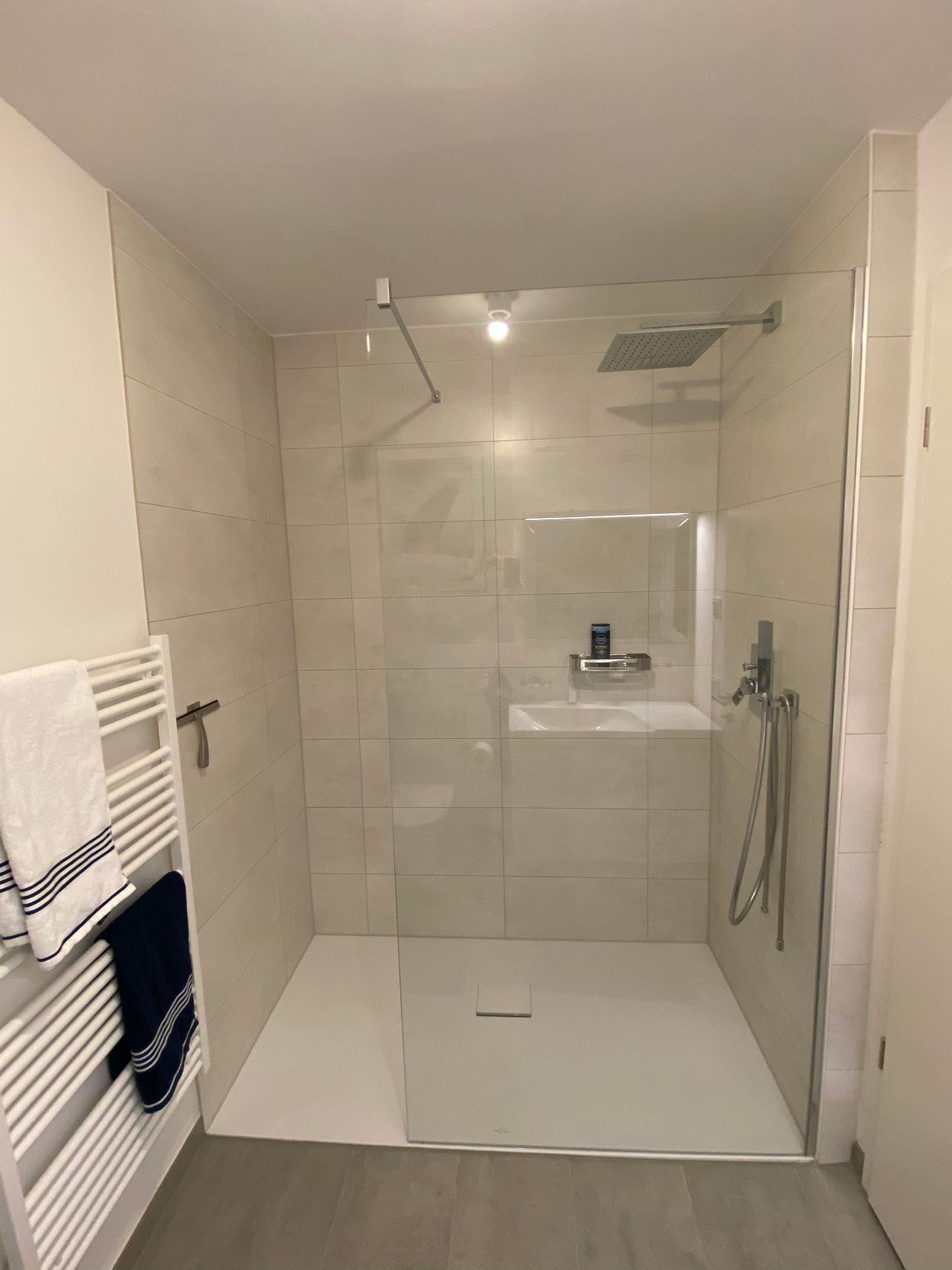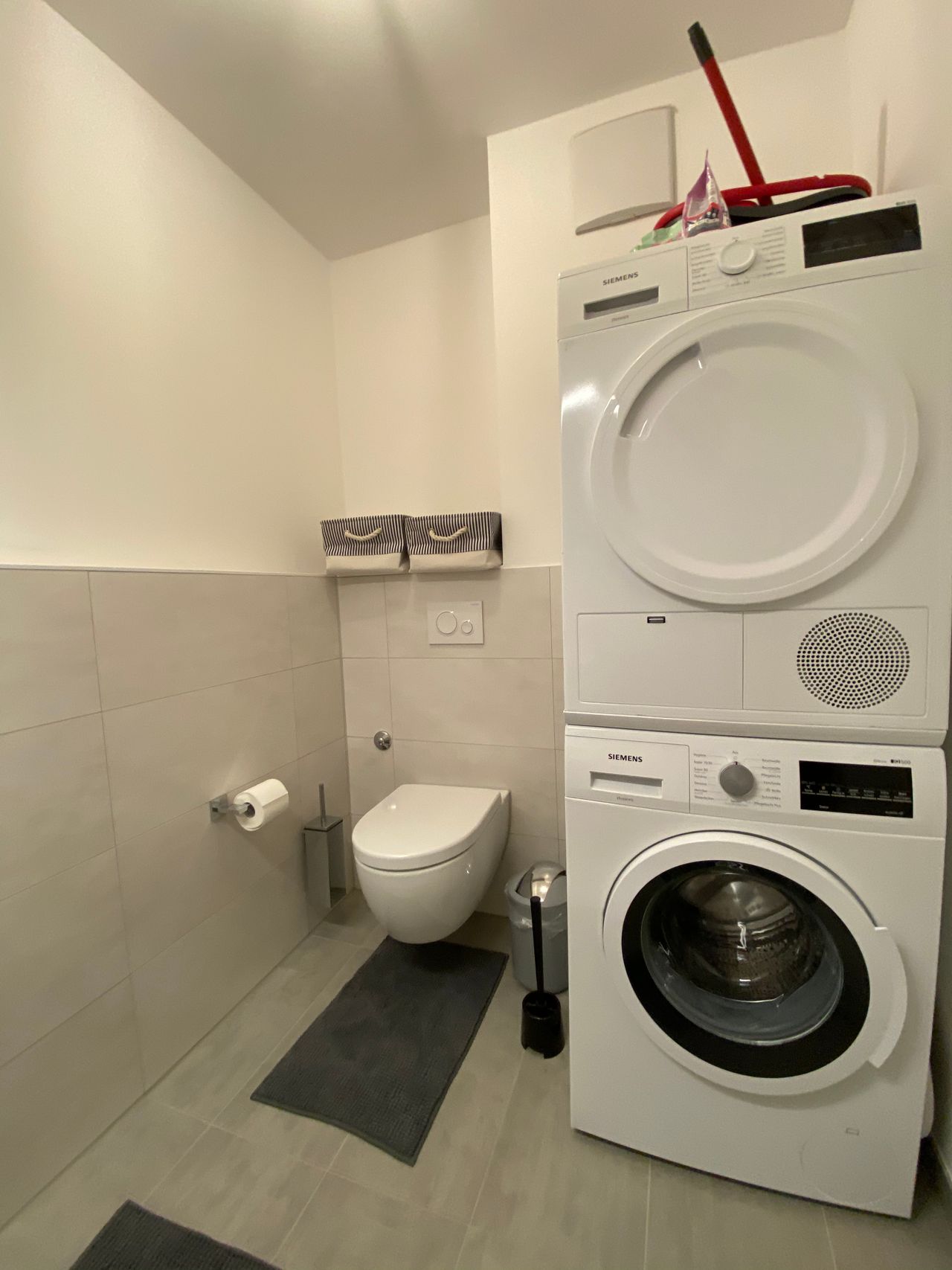 - 2 badkamers met douchecabines, toiletten en luxe wastafels, de tweede badkamer is voorzien van een Siemens wasmachine en droger