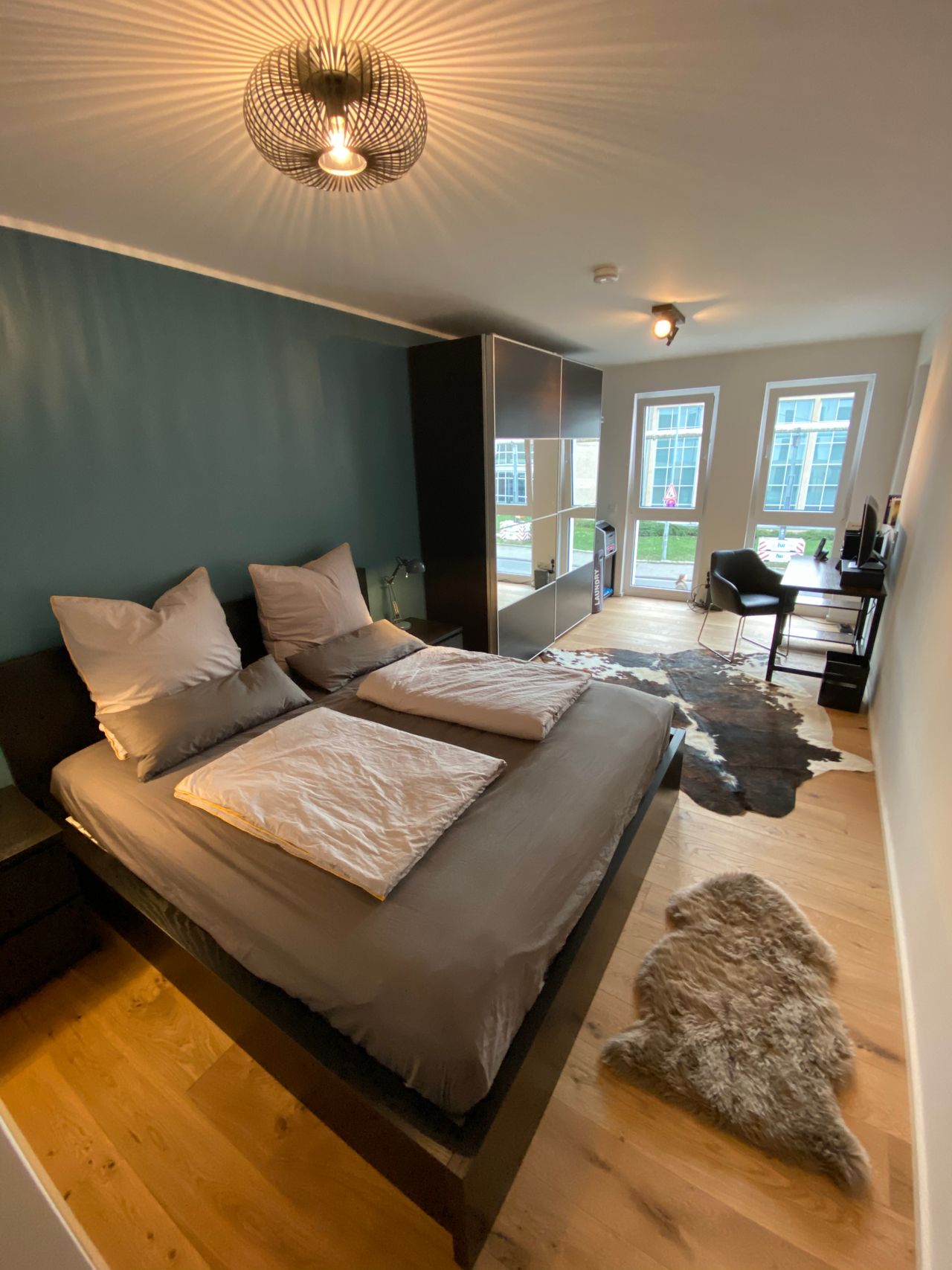- Slaapkamer met kingsize bed (180cm x 200cm), dikke comfortabele matras; Ruime kast, bureau met kleurenlaserprinter en groot computerscherm