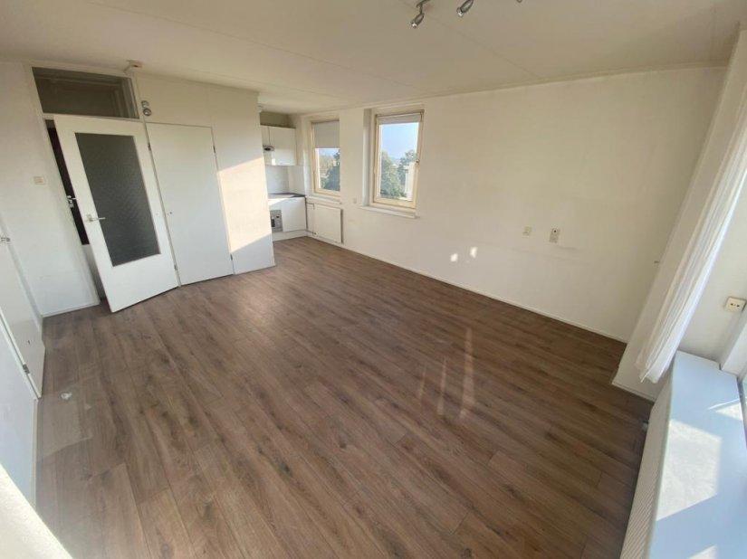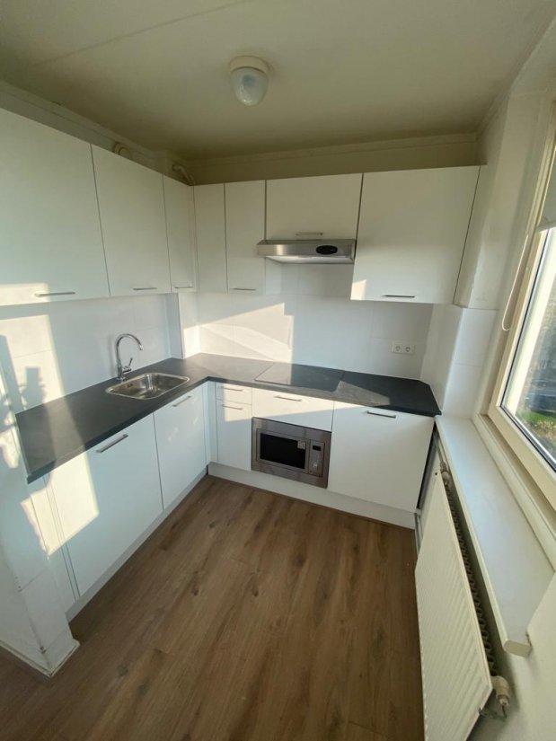 De ruime woonkamer met open keuken zorgt voor een lichte en open sfeer. De keuken is praktisch ingedeeld en biedt voldoende ruimte om comfortabel te koken. De aparte slaapkamer biedt rust en privacy, terwijl de nette badkamer is voorzien van alle basisgemakken.
