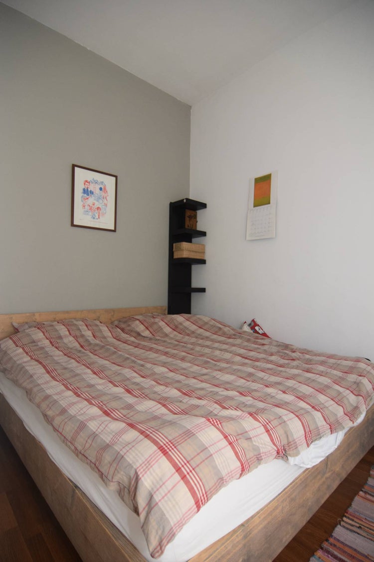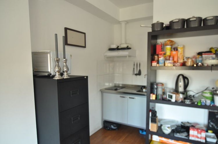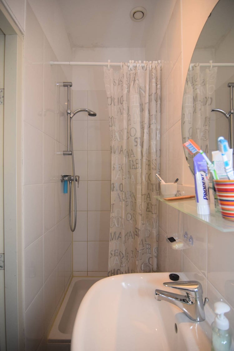 De slaapkamer is apart. De studio is netjes afgewerkt met witte muren en een laminaatvloer. Je kan gezamenlijk met de andere bewoners gebruiken maken van de wasmachine en droger welke zich bevinden op de eerste verdieping.
