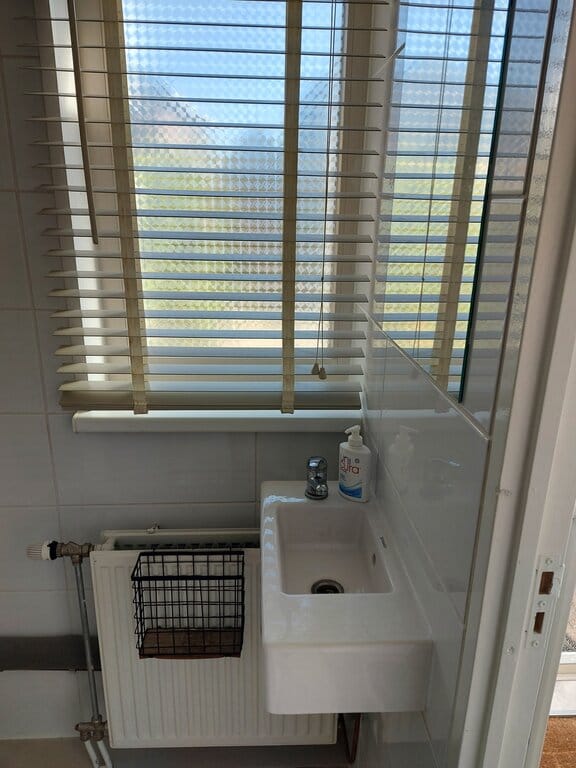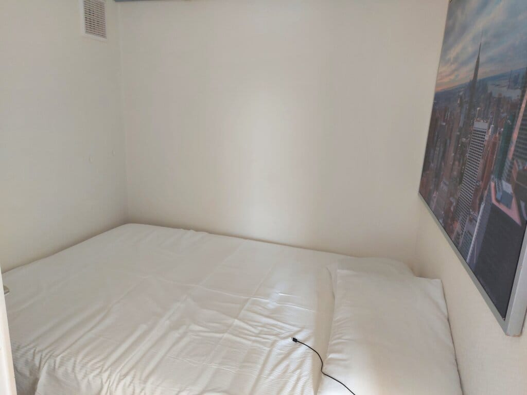 Het slaapgedeelte bevindt zich achter de woonkamer. Vanuit hier heeft u toegang tot de keuken en badkamer. De keuken is voorzien van een koelkast, kookplaat en afzuigkap. Hier is tevens ook de wasmachine gesitueerd.