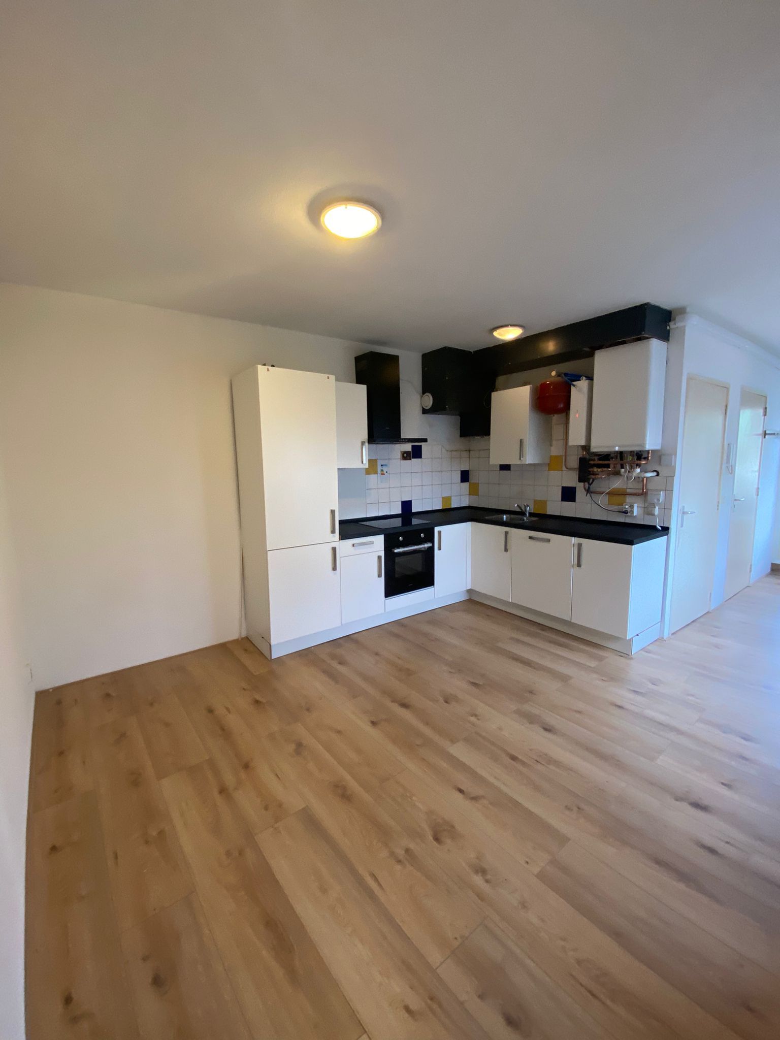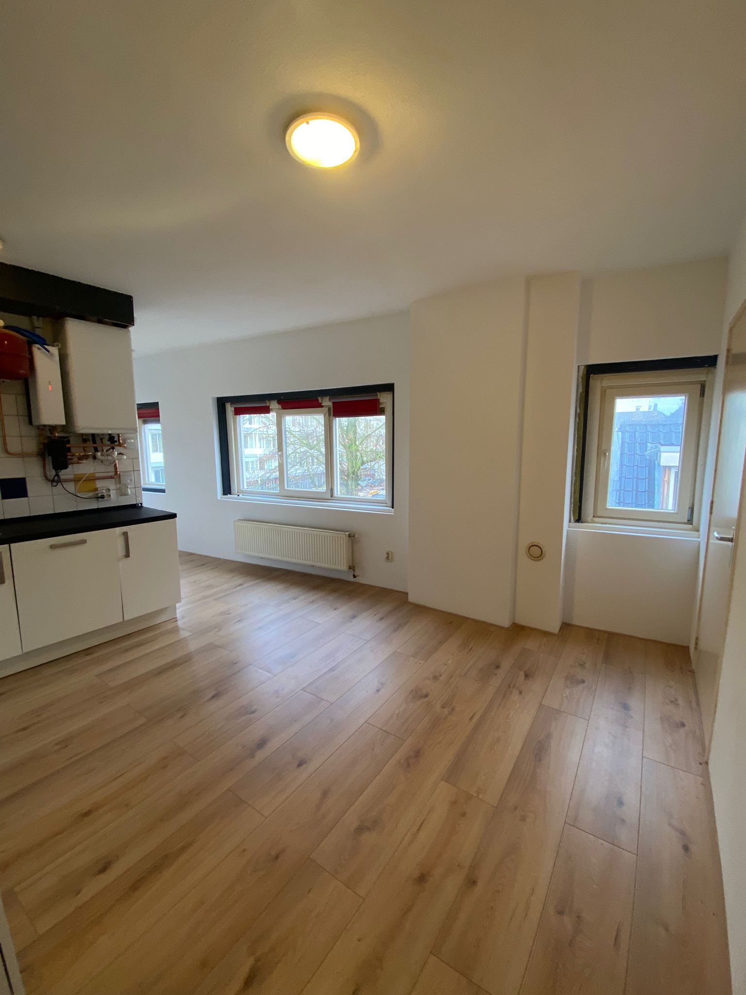 Middels het trappenhuis bereikt u de tweede etage, waar het appartement is gelegen. Bij binnenkomst betreedt u de woonkamer van circa 20 m², welke een prettige en lichte leefruimte biedt. De open keuken is functioneel ingericht en voorzien van een inductiekookplaat, afzuigkap, oven, koelkast, vriezer en vaatwasser. Het appartement beschikt over één slaapkamer van circa 6 m².