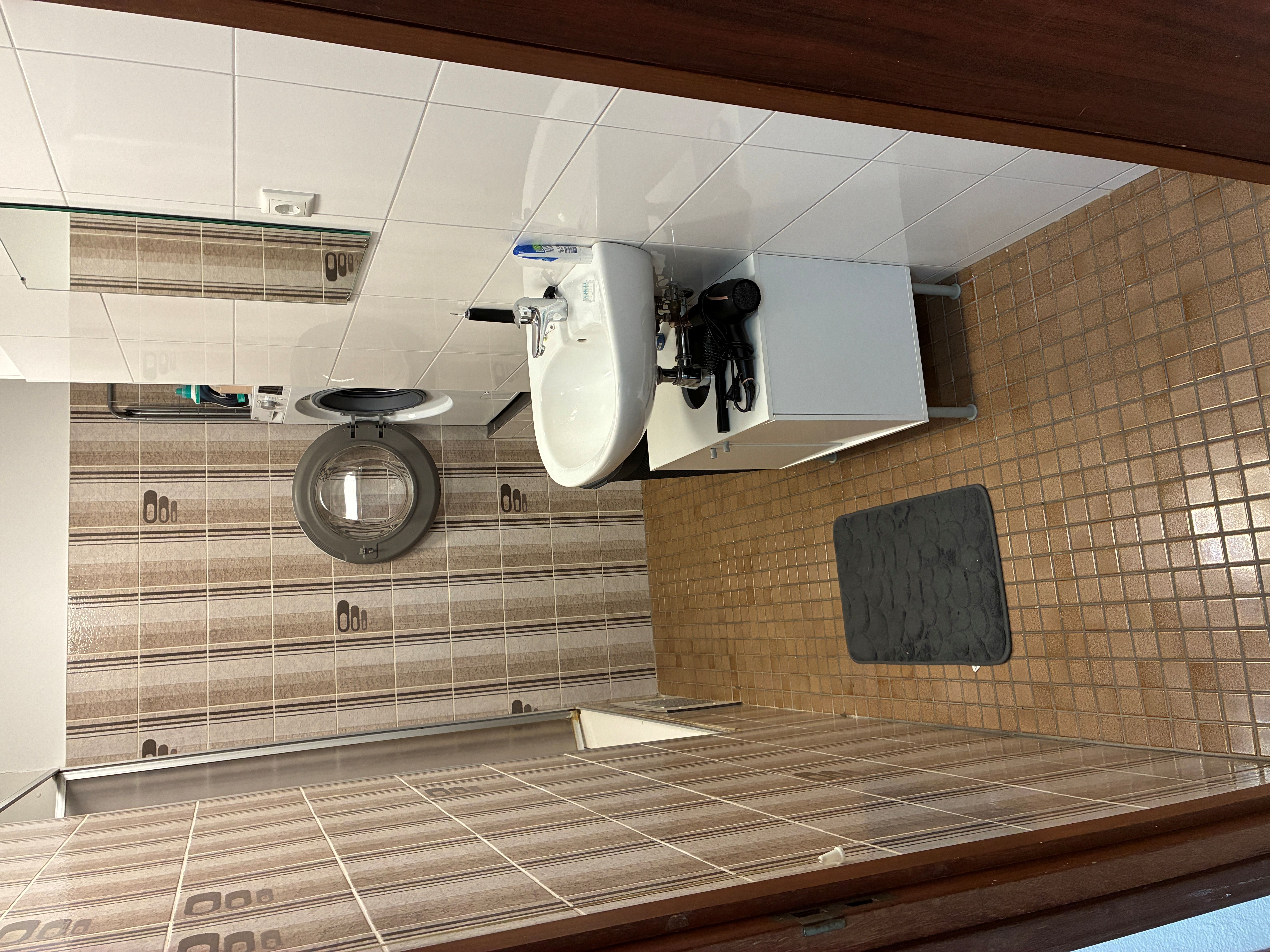 Begane grond: centrale toegangsdeur/ hal, 1e verdieping: woonkamer met open keuken, woon-/slaapkamer, badkamer met douche, wastafel en wasmachine aansluiting en een apart toilet met fonteintje.