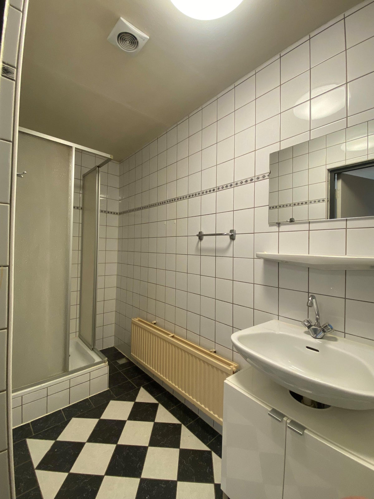 Badkamer met douche, toilet en wastafel. Eigen CV boiler voor warm water.