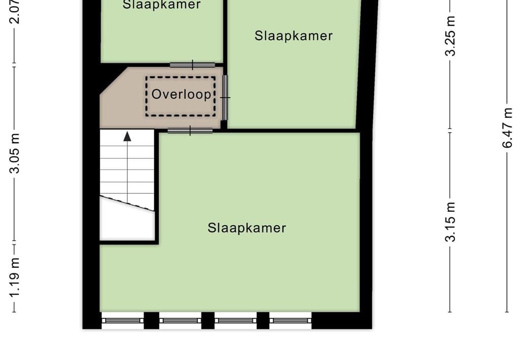 Overloop. met toegang tot 3 slaapkamers, respectievelijk groot; ; en , allen voorzien van laminaat.