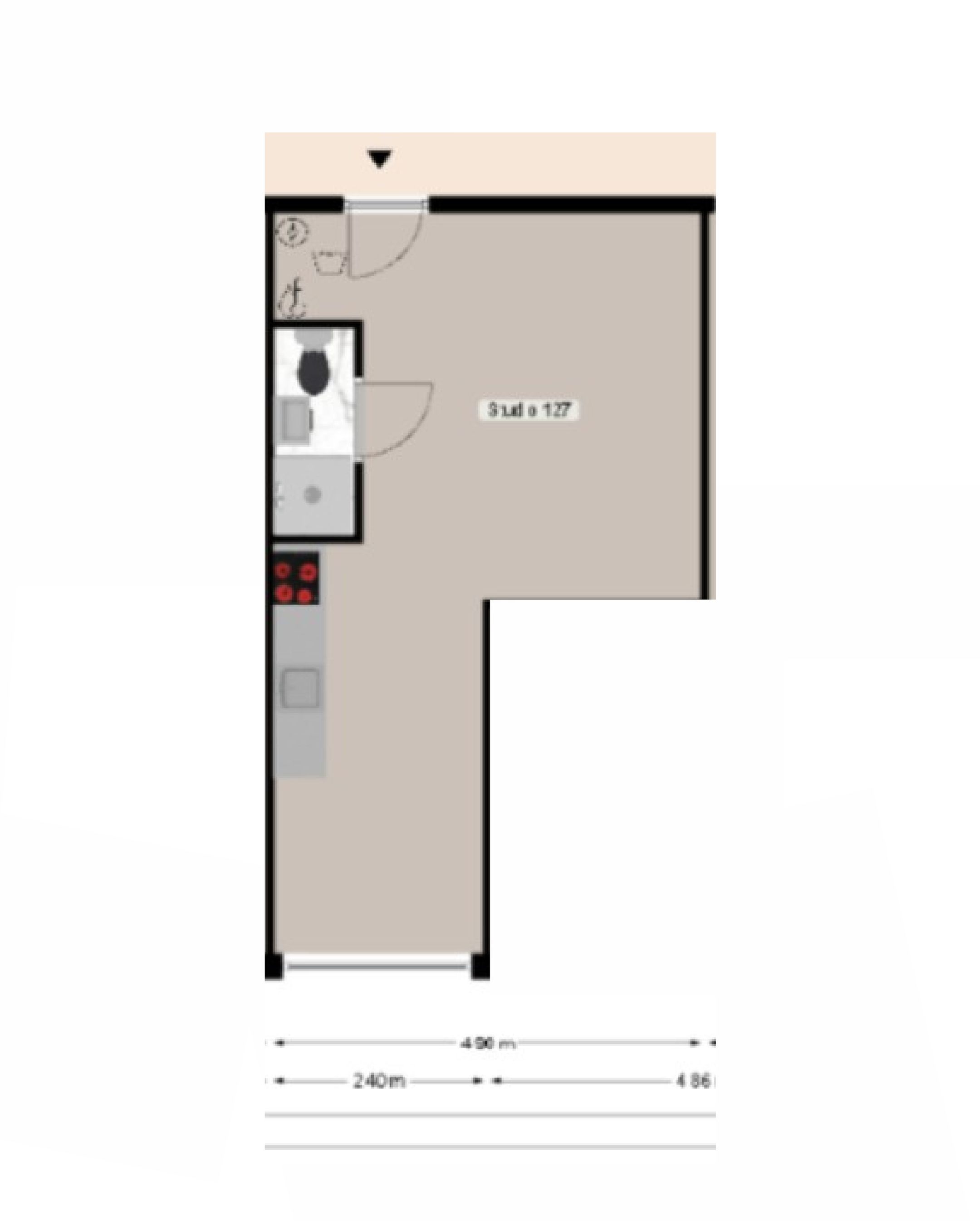 De studio is efficiënt ingedeeld en biedt een comfortabele leefruimte.