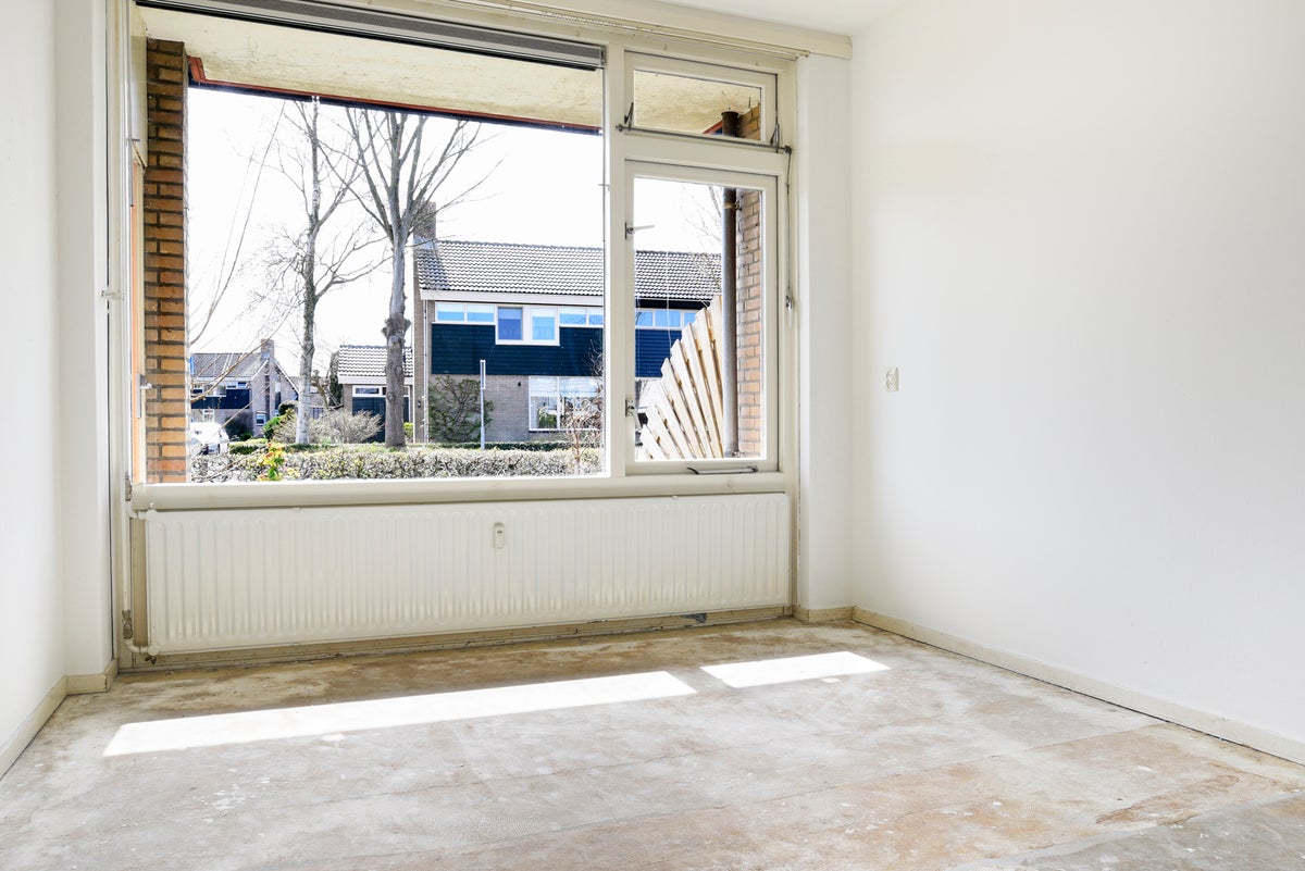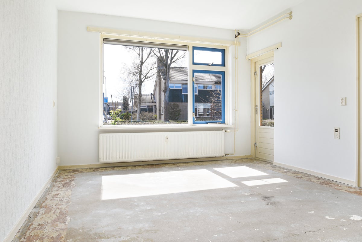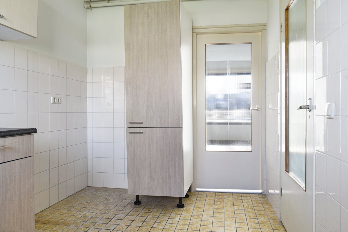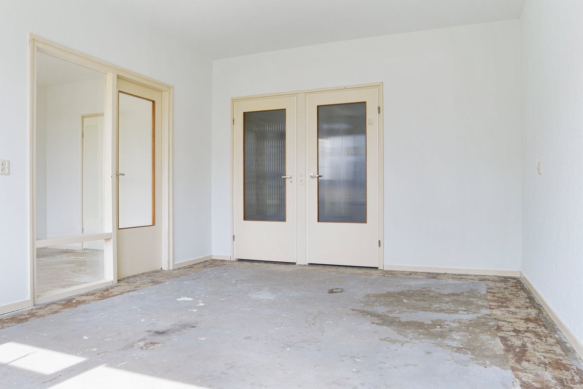 Aan het einde van de gang loopt u de woonkamer van 18 vierkante meter binnen. Vanuit dit vertrek heeft u toegang tot zowel de afgesloten keuken (8 vierkante meter) als de ruime slaapkamer (11,5 vierkante meter). De afgesloten keuken is uitgerust met een standaard keukenblok met kraan. Voor zaken als een kookplaat, afzuigkap, oven/magnetron, koelkast/vriezer en vaatwasser dient u zelf te zorgen.