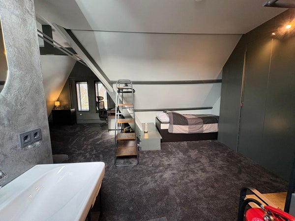 This room is located at the top floor and is very specious. The room will have a single bed, desk, wardrobe and private sink. The kitchen, the bathrooms (3 bathrooms) and toilet are shared with five other residents. The rental price includes: * Internet * Gas, water and electricity * Cleaning common areas The heating system of the house is located in the room.