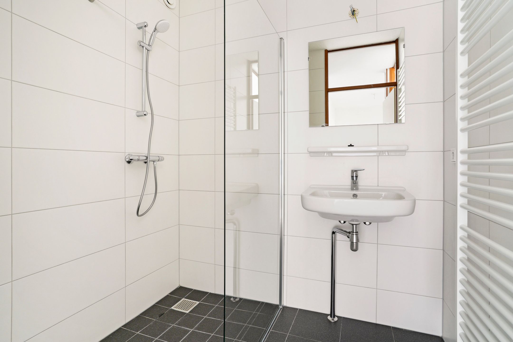De badkamer wordt gerenoveerd en voorzien van een douche en wastafel.