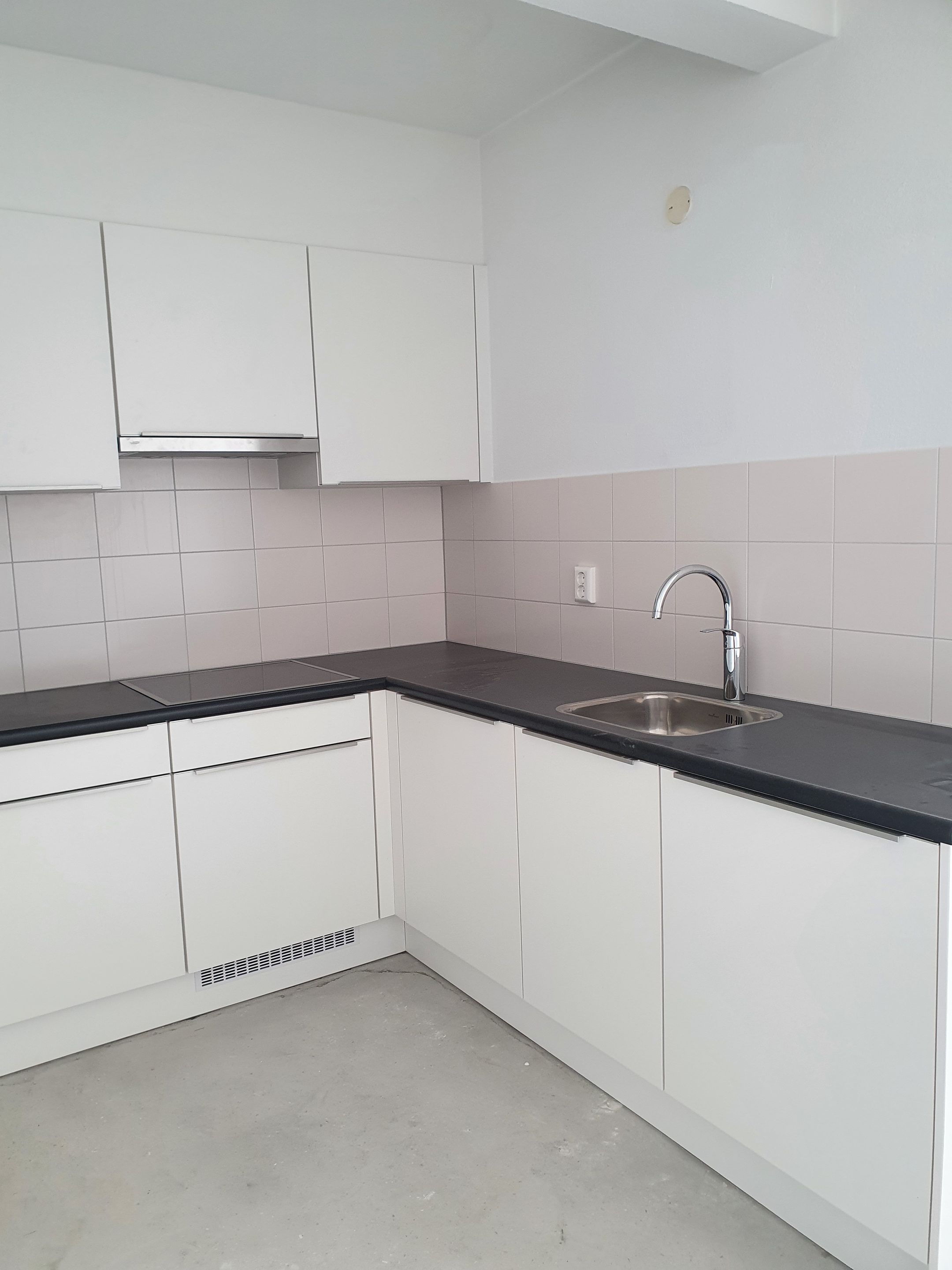 De keuken wordt gerenoveerd. De nieuwe keuken is voorzien van een inductiekookplaat met afzuigkap, vaatwasser, combimagnetron en koel-vriescombinatie.