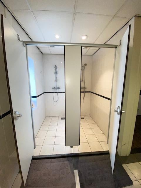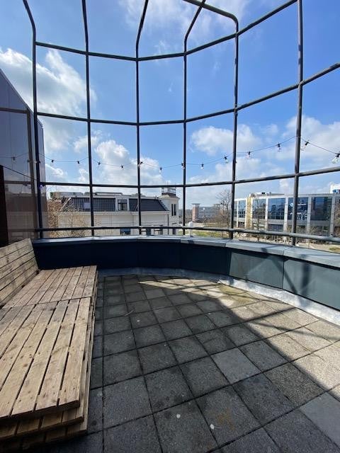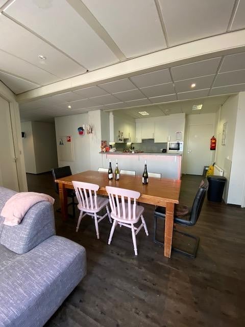Je deelt de woning met 6 andere studenten: de woonkamer/keuken, badkamer/douches (2 douches), 2 toiletten, een wasmachine en droger en het dakterras + balkon op de 4e verdieping.