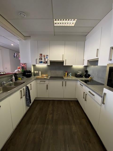 De gezamenlijke keuken is voorzien van een vaatwasser, combi oven, 2 inductie kookplaten en een koelkast. In de gezamenlijke ruimtes worden de vloeren en de badkamer wekelijks schoongemaakt door een schoonmaakbedrijf.