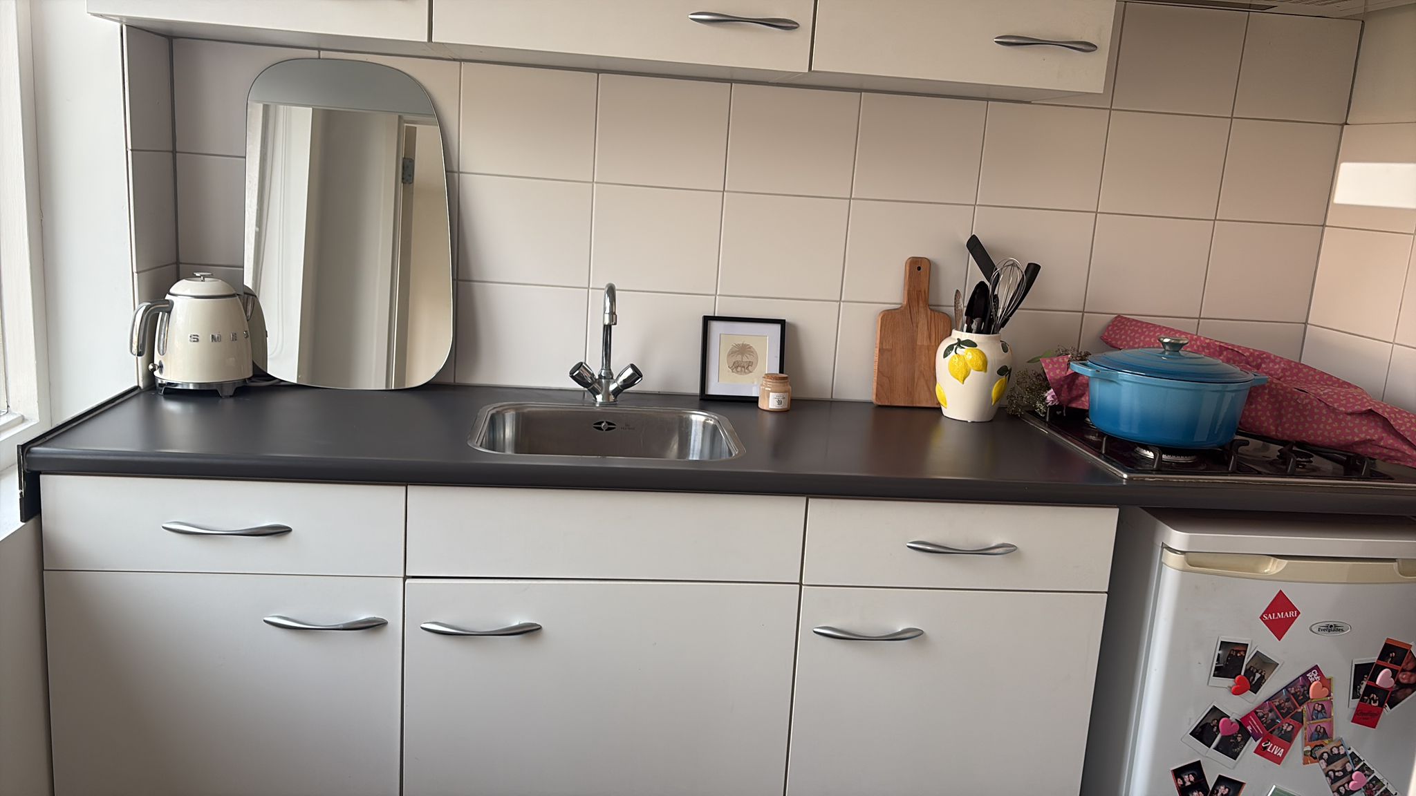 De studio zeer goed in te delen heeft een eigen keuken met alle faciliteiten tot zijn beschikking de douche toilet wasmachine en droger wordt gedeeld met twee andere zeer nette mede-bewoners..