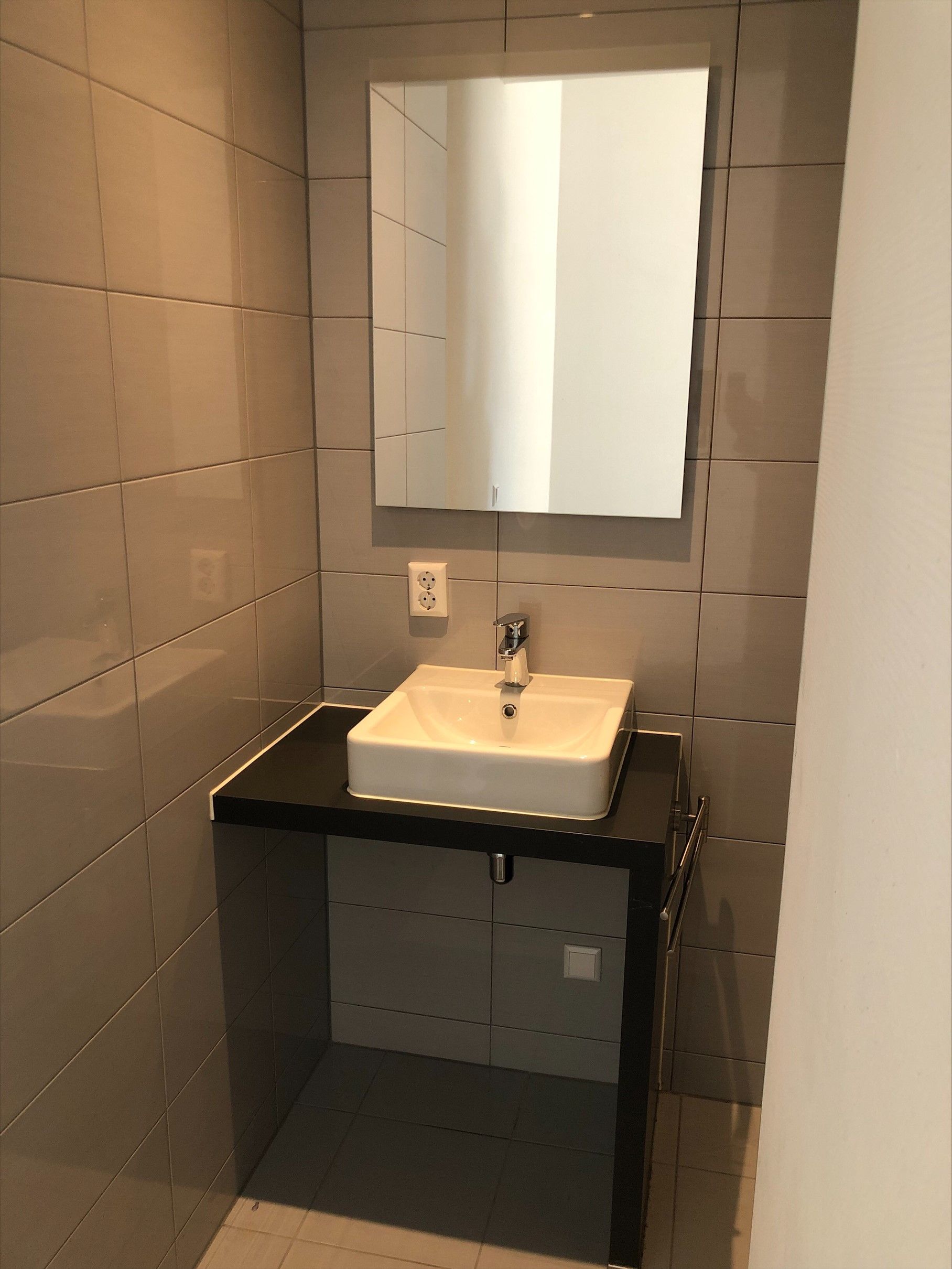 De keuken is voorzien van een elektrische kookplaat, afzuigkap, combi-oven, koelkast met vriesvak en vaatwasmachine. Via de keuken is het toilet bereikbaar met douchehoek en wastafel. Het toilet is gesitueerd bij de ingang van de woning.