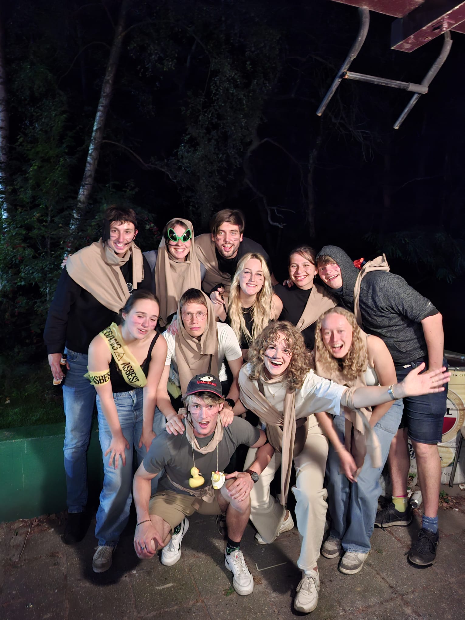 Momenteel wonen wij met 9 mannen en 3 vrouwen die allemaal actief zijn in het studentenleven. We zijn nu dus op zoek naar een vrouwelijke huisgenoot! We hebben een grote gedeelde woonkamer, keuken, badkamer en 2 wc's. We hebben jaarlijks een aantal activiteiten, zoals halloween, sinterklaas, kerst, pasen en oud en nieuw. Ook gaan we soms samen op vakantie, doen we mee aan de batavierenrace en gaan we jaarlijks op wintersport.