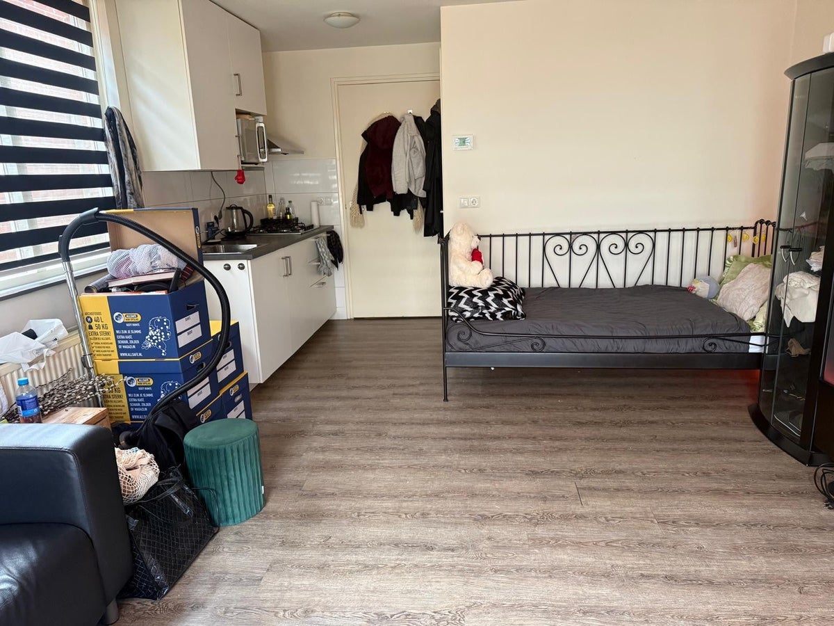Geheel nieuwe studio met een lichte woon / slaapkamer . laminaatvloer, open keuken met diverse apparatuur.