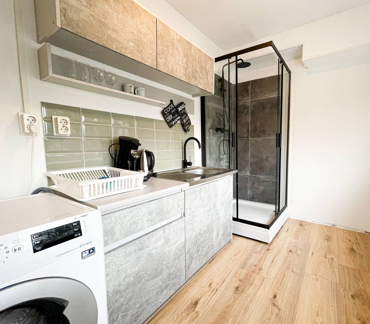 De studio bevindt zich op de eerste verdieping en is circa 30 m², luxueus en trendy ingericht.