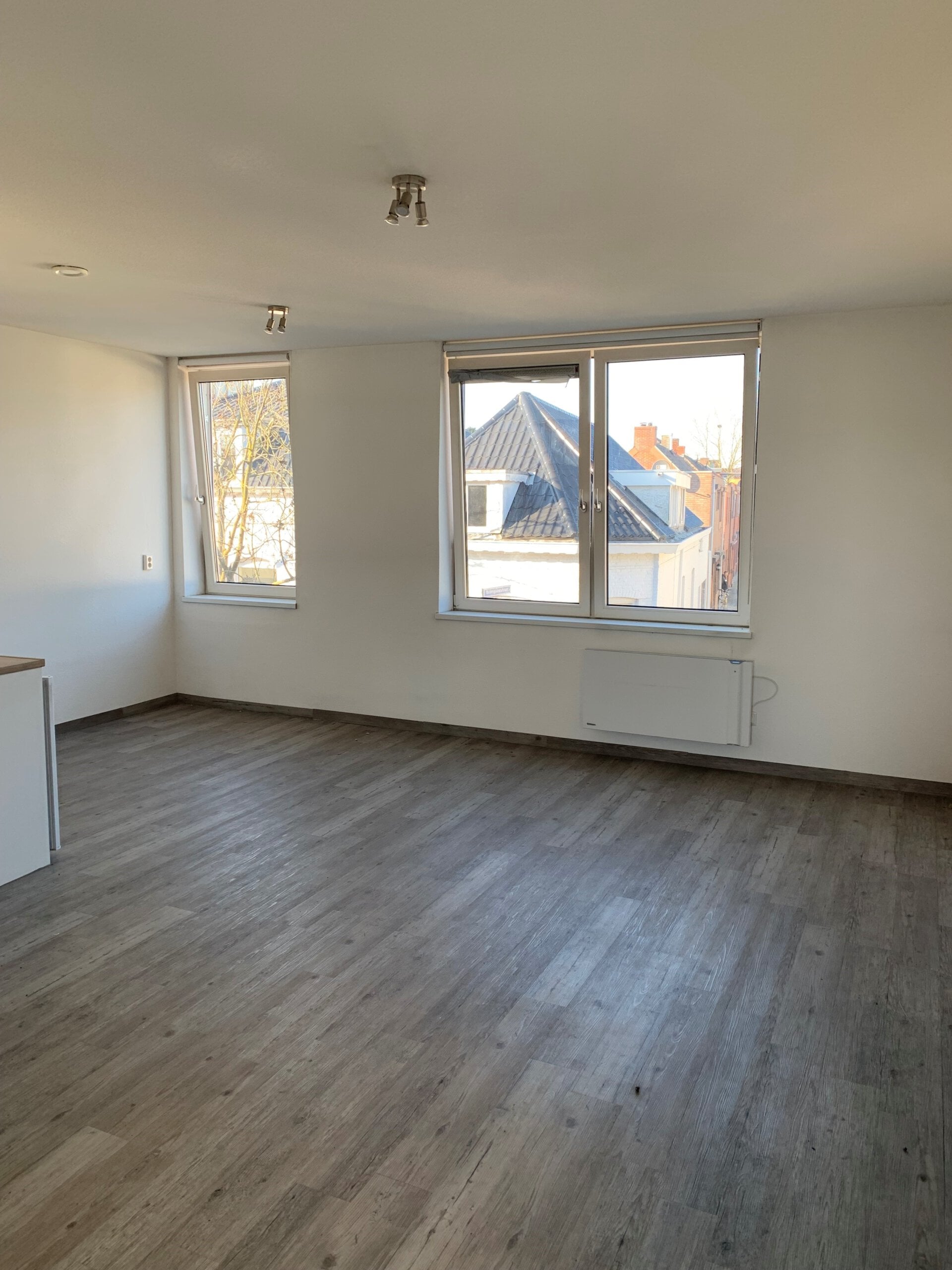 Op de 1ste etage gelegen, gestoffeerd met raambekleding, moderne PVC vloer en plafondverlichting.