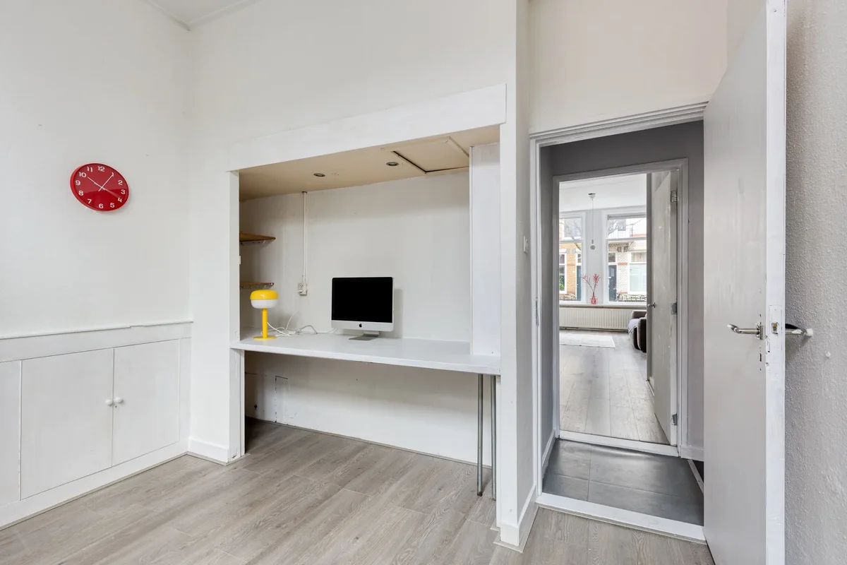 De kamer van circa 11m² is gelegen aan de achterkant van de woning en kan worden ingericht met aparte leef- en slaapruimtes. Daarnaast zijn er diverse ingebouwde kasten aanwezig.