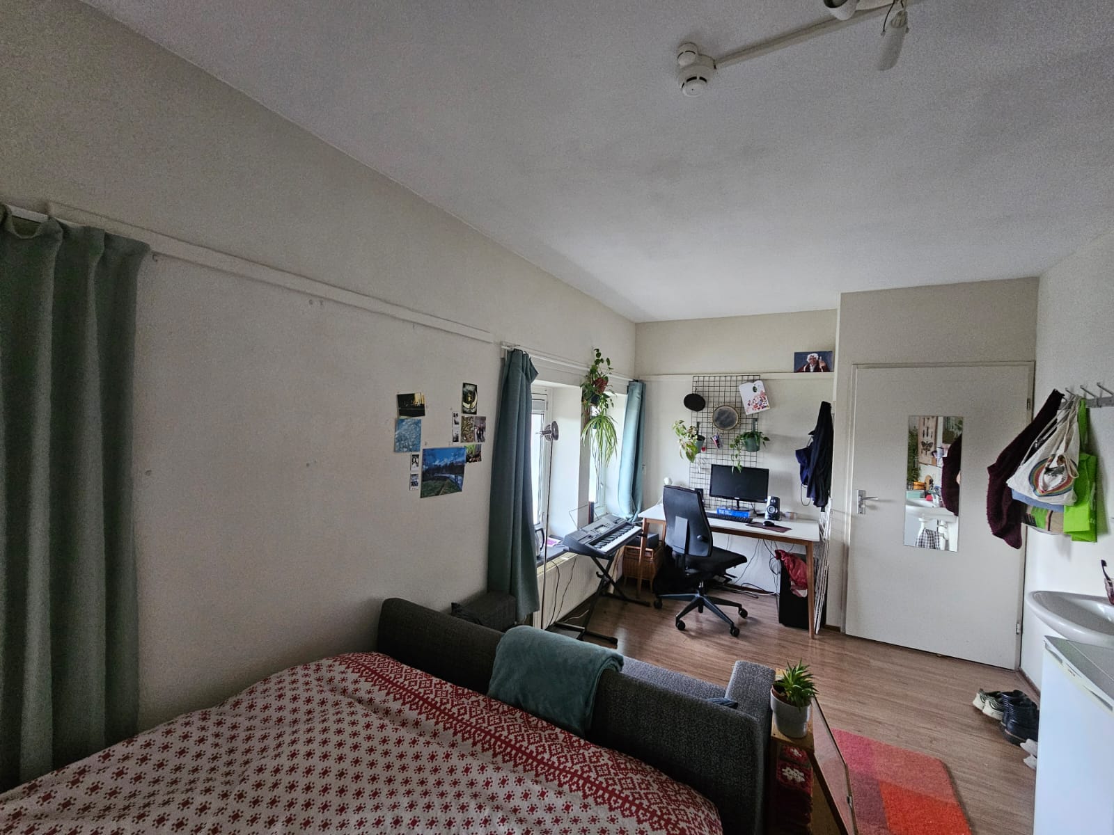 De kamer heeft een eigen wastafel een een kleine koelkast. Locatie is dicht bij het centrum (2 minuten naar strasumseind lopen) en maar 9 minuten fiesten van de fontys en TU/e.