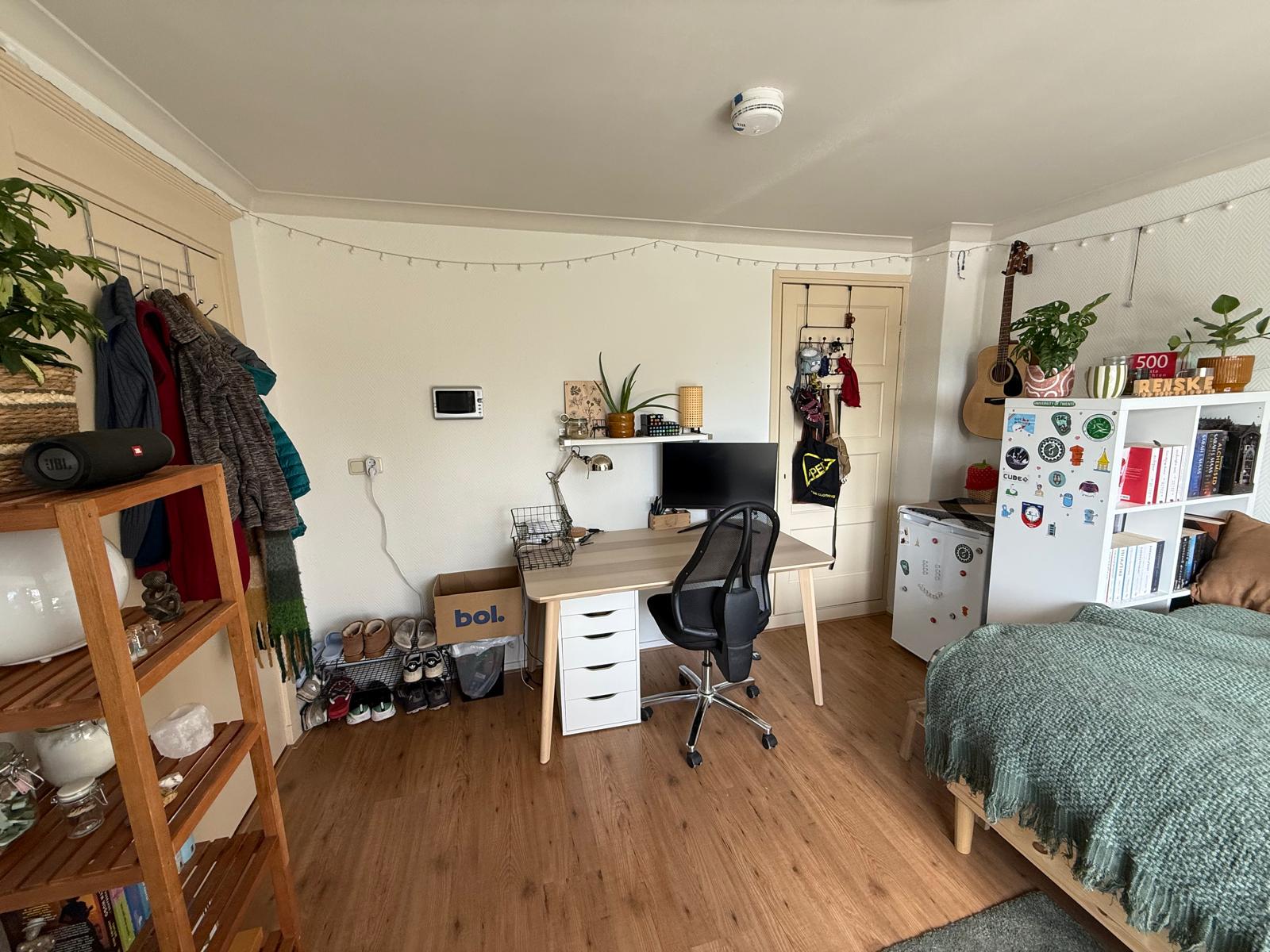 Ruime kamer voorzien van een eigen badkamer met wastafel, douche en WC.Gelegen in het centrum van Enschede binnen de singel.Voorzien van een gemeenschappelijke luxe keuken wasmachine en droger.