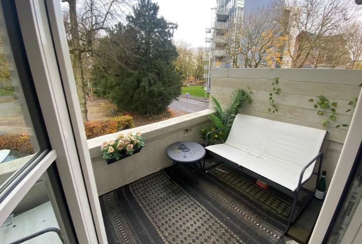 Vanuit de woonkamer is het ruime balkon toegankelijk. De woning beschikt verder over een badkamer met een douche en wastafel, en is er een apart toilet aanwezig. De huurprijs voor dit appartement bedraagt €910,03,- per maand, inclusief een voorschot van €125,- voor gas, water, elektriciteit, internet en televisie..