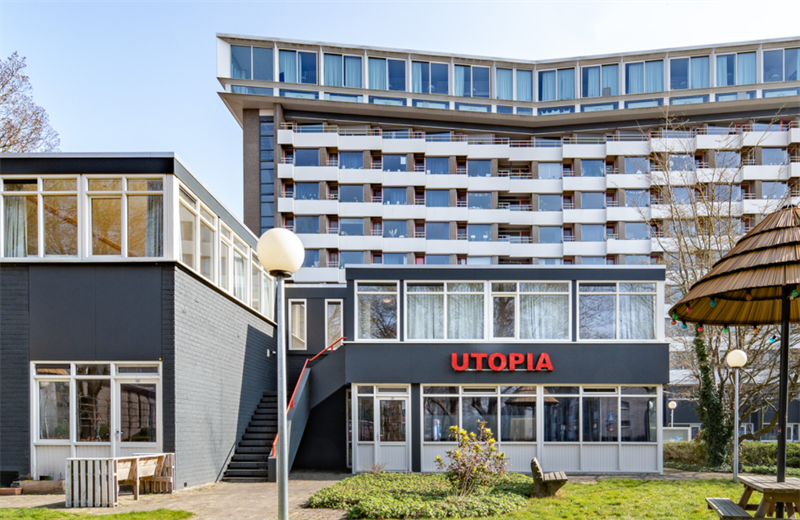 Indeling: Gezamenlijke entree met een lift wat toegang biedt tot de betreffende etage van de studio. Bij binnenkomst tref je de ruime woonkamer met open keuken welke beschikt over diverse faciliteiten zoals een 4-pits kookplaat, magnetron en koelkast. De badkamer is voorzien van een toilet, douche en wasbak. Verder is de gehele studio voorzien van een nette laminaatvloer en verduisterende gordijnen.Bereikbaarheid: Het complex Utopia is eenvoudig te bereiken middels het openbaar vervoer, de fiets of de auto.
