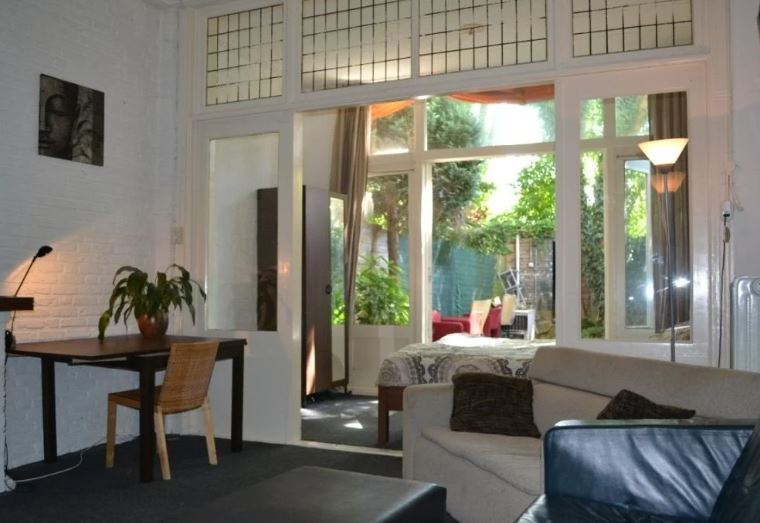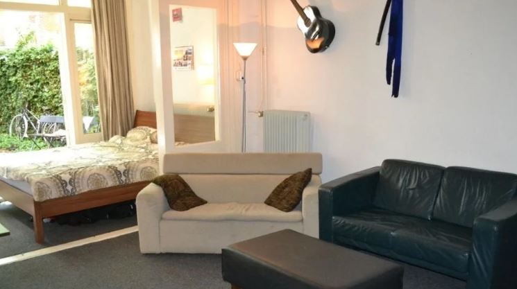 De kamer is ± 30 m² en heeft openslaande deuren naar de achtertuin. De kamer is goed op te delen in een woon en slaapgedeelte.