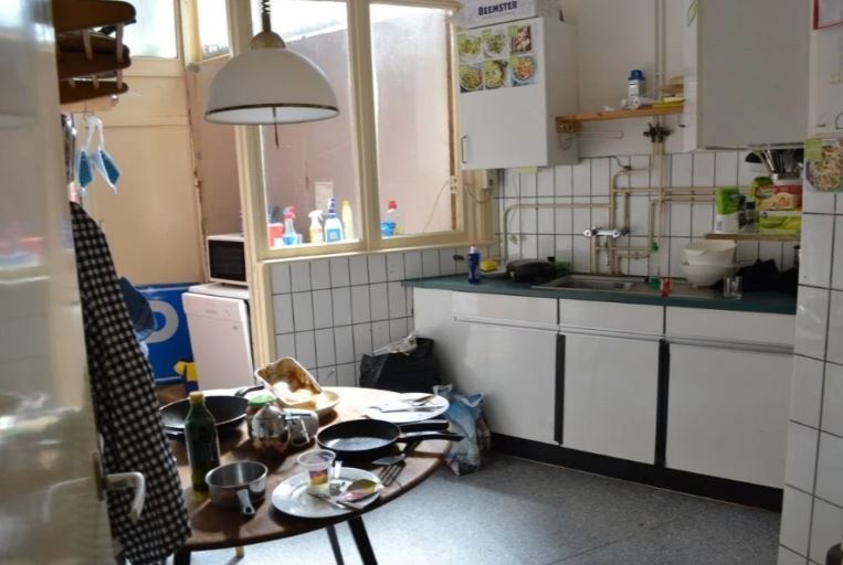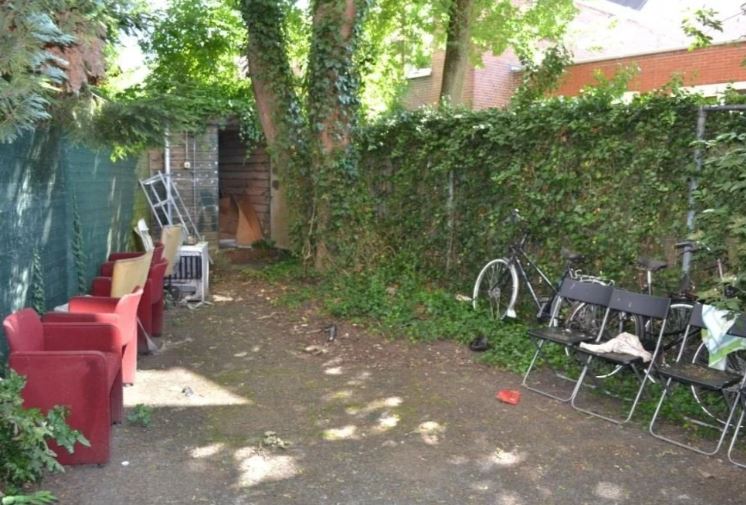 De gemeenschappelijke keuken deel je net als de douche en toilet met drie huisgenoten. Achter het huis is een ruime gemeenschappelijke tuin..