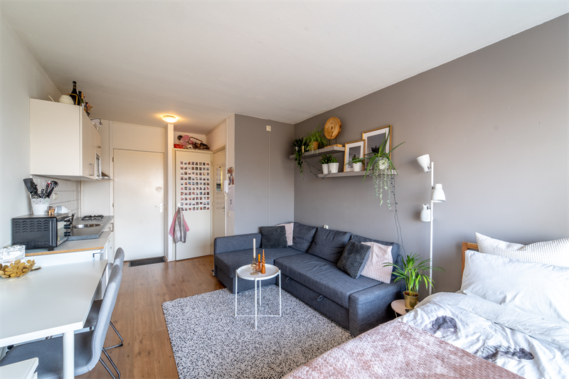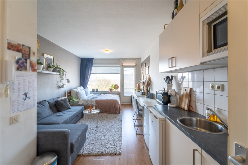 19m2 in de wijk Selwerd te Groningen.De studio is bereikbaar middels een gezamenlijke entree. Het complex beschikt over een lift en trappenhuizen. Daarnaast is er een gezamenlijke wasruimte aanwezig met diverse wasmachines en drogers. Tevens is de studio recent verduurzaamd.
