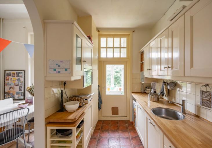 De keuken is voorzien van een afzuigkap, gaskookplaat, combioven, koelkast en vaatwasser. Het toilet bevindt zich op de hal. Op de eerste en tweede verdieping liggen de slaapkamers. De badkamer is uitgerust met een douche, wastafel en toilet.