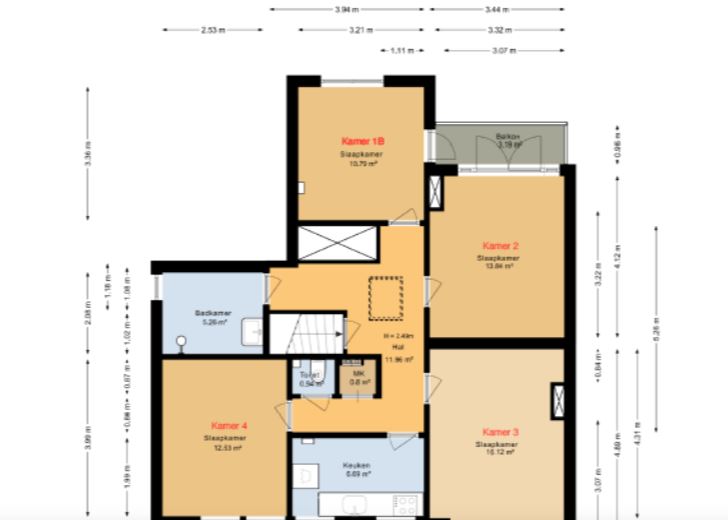 Indeling en voorzieningen: kamer 2 is gelegen op de eerste verdieping aan de achterzijde van het pand en heeft een oppervlakte van circa 13,84 m². Er is voldoende ruimte voor een tweepersoonsbed, een bureau, een kledingkast en eventueel een kleine zithoek. Kamer 4 is gelegen op de eerste verdieping aan de voorzijde van het pand en heeft een oppervlakte van circa 12,53m². De badkamer bevindt zich op de eerste etage en wordt gedeeld met vier medebewoners.