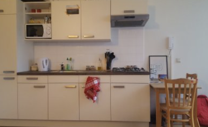 Omgeving: De studio ligt op een toplocatie voor studenten, namelijk op het randje van de wijk Selwerd. Vlak naast het complex is een winkelcentrum gelegen met een grote supermarkt, eetgelegenheden en cafés. Station Noord is binnen handbereik en het Zernike Campus is op ca. 5-10 minuten fietsafstand van het complex.Indeling: Bij binnenkomst tref je de ruime woonkamer met open keuken welke beschikt over diverse faciliteiten zoals een 4-pits kookplaat, afzuigkap, magnetron en koelkast.