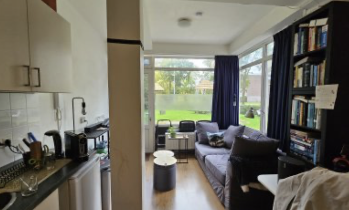 25m2 in de wijk Selwerd te Groningen. De studio bevindt zich op de begane grond en is bereikbaar middels de gemeenschappelijke tuin. Het complex beschikt over een lift en trappenhuizen. Daarnaast is er een gezamenlijke wasruimte aanwezig met diverse wasmachines en drogers en een gezamenlijke buitenruimte.