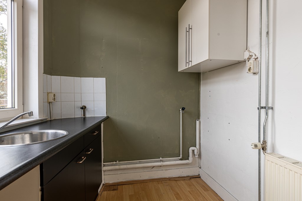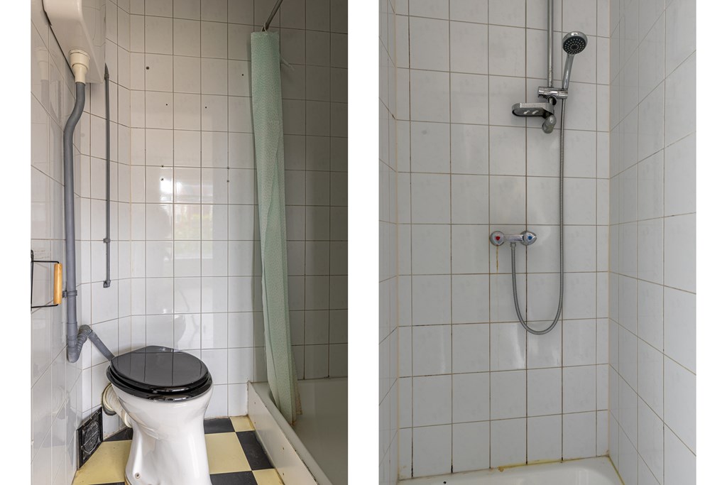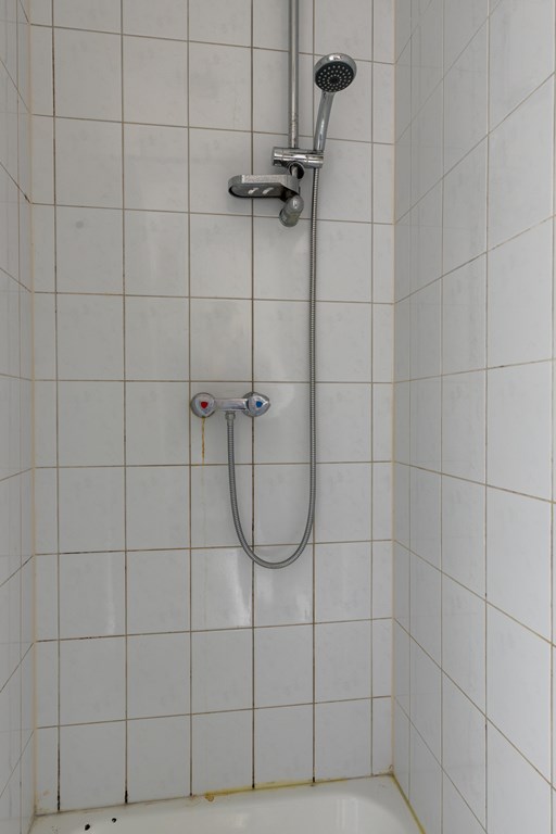 Aan je linkerzijde vind je de deur naar de badkamer, die is uitgerust met een toilet en een moderne douchecabine. De studio beschikt daarnaast over een halfopen keuken, die eveneens zicht biedt op de straat en een lichte en uitnodigende sfeer creëert tijdens het koken. U kunt deze studio al huren voor 800 euro exclusief.Servicekosten bedragen 150 euro all in per maand en bestaan uit; gas, water, elektra en onze 24 uurs service. Wifi dient u zelf te regelen.