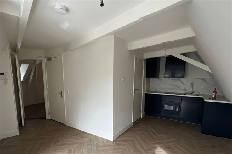 Het appartement beschikt over een woonkamer met open keuken, voorzien van diverse inbouwapparatuur. Daarnaast is er een aparte slaapkamer en een badkamer..