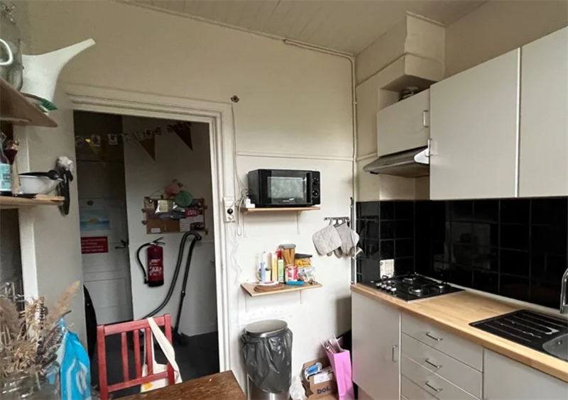 Verder ligt het centrum van Groningen op fietsafstand met breed scala aan winkels, restaurants en cafés. De woning is goed bereikbaar met het openbaar vervoer. Indeling Bij binnenkomst in de woning kom je eerst in de hal, die toegang geeft tot de gemeenschappelijke ruimtes. De woning heeft een gemeenschappelijke keuken die van alle gemakken is voorzien.