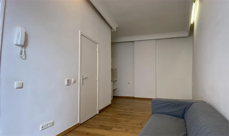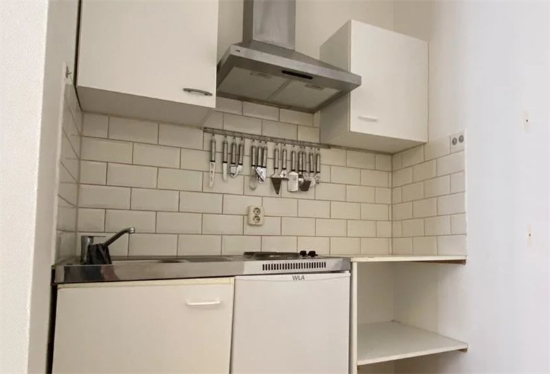 Beschikbaar voor een één-persoonshuishouden. Indeling: Souterrain: Privé berging (3m²) met gezamenlijk wasmachine. Begane grond: Entree/hal met doorgang naar de gezamenlijke binnenplaats met mogelijkheid voor het plaatsen van een fiets. Toegang studio aan achterzijde met woon-/slaapkamer, keukenblok met afzuigkap, spoelbak, 2-pits elektrische kookplaat en koelkast met vriesvakje.