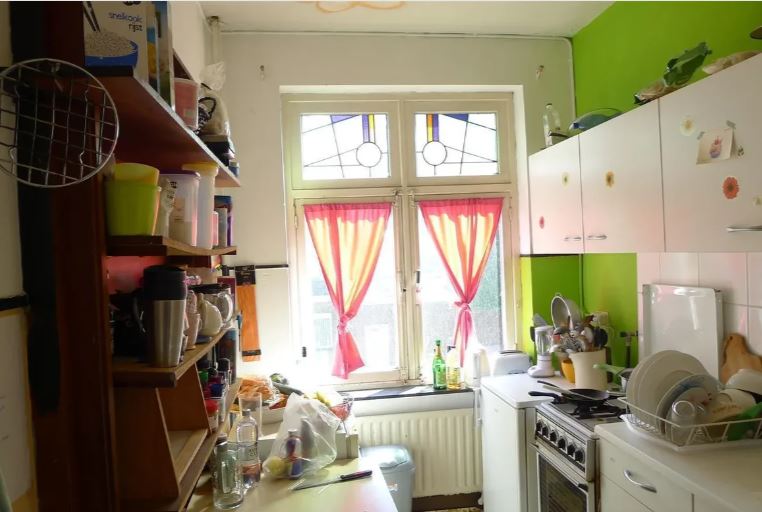Kamer op de begane grond in een studentenhuis.
