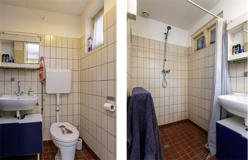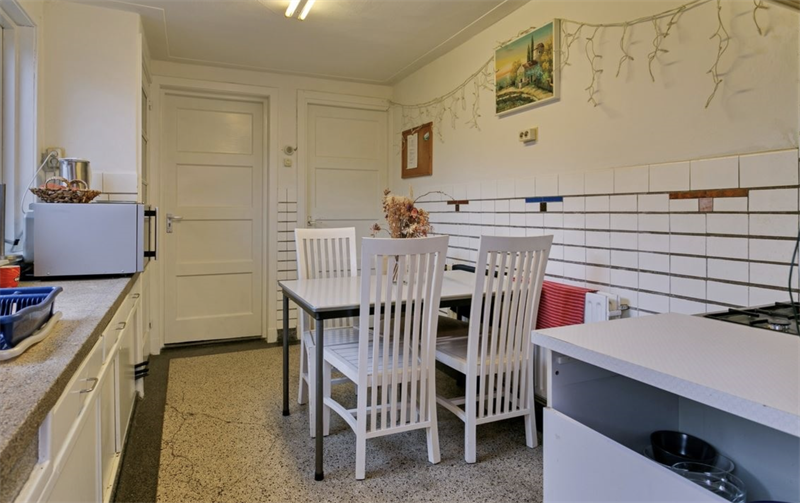 Aan de voorzijde is er een gezamenlijke woonkamer van circa 10 m². In de bijkeuken op de begane grond staan een wasmachine, droger en koel-vriescombinatie die gezamenlijk gebruikt kunnen worden. Vanuit de bijkeuken heb je directe toegang tot de achtertuin - ideaal om lekker buiten te zitten of te ontspannen. De woning deel je met vier anderen, en een luxe is dat er twee badkamers zijn.