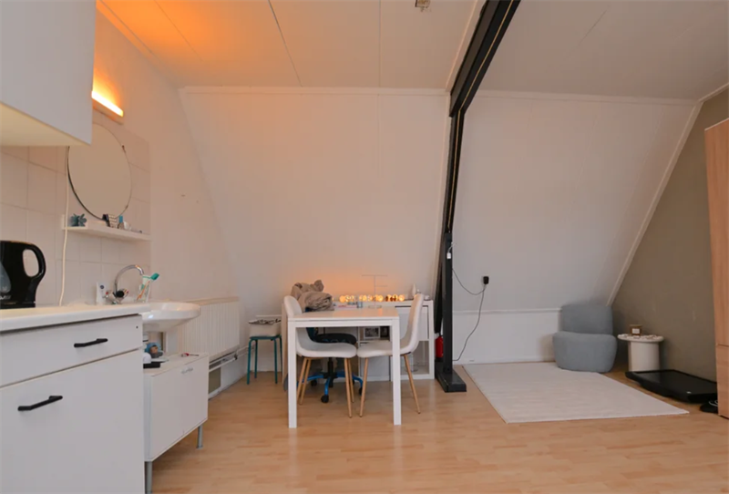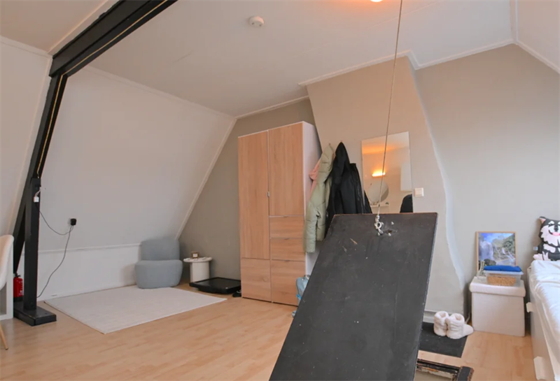 De kamer is gelegen op de derde etage aan de voor- en achterzijde van het pand. INDELING De kamer heeft een oppervlakte van circa 22 m2 en beschikt over een eigen keuken. De ruimte biedt voldoende mogelijkheden voor het plaatsen van een eettafel, een bank en een tweepersoonsbed. Doordat de woning ongemeubileerd wordt verhuurd, kan de kamer volledig naar eigen wens worden ingericht.