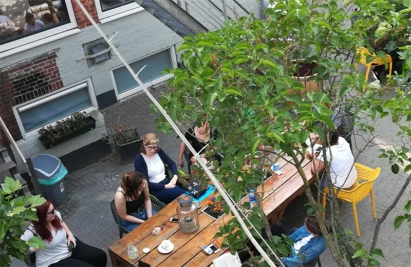 Je deelt 11 douches en 11 toiletten (dus geen lange wachttijden!) en één grote gedeelde keuken. Buiten je kamer is er veel ruimte om van te genieten - een gemeenschappelijke woonkamer van 160 m², een binnenplaats van 200 m², en een fietsenstalling van 75 m² voor je Nederlandse fiets..