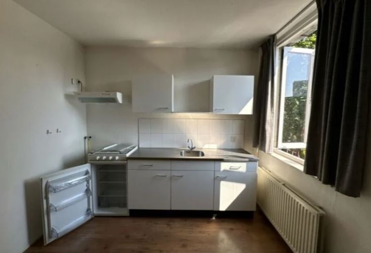 Via de hal bereik je alle kamers en de gemeenschappelijke ruimtes. De slaapkamer met eigen keuken heeft een gebruiksoppervlakte van 13m2. Daarnaast beschikt de woning over een gedeelde badkamer. Huurprijs De huurprijs voor kamer 1 bedraagt €631,29,- per maand, inclusief een voorschot van €75,- voor gas, water en elektra.