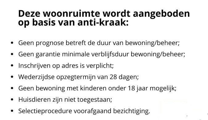 • Selectieprocedure voorafgaand aan bezichtiging. Zijn jullie op korte termijn beschikbaar voor een bezichtiging én kunnen jullie snel verhuizen? Reageer dan als stel, en wie weet wonen jullie binnenkort antikraak in het groen!.