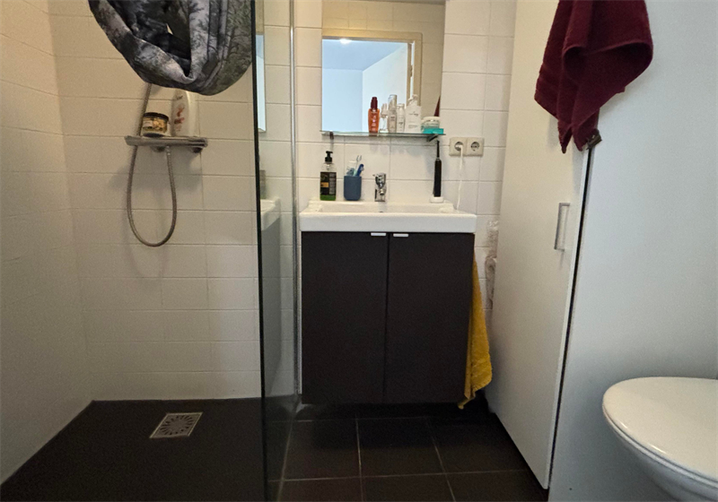 De badkamer beschikt over een toilet, ruime douche en wastafel met meubel. Huurtoeslag is mogelijk!.