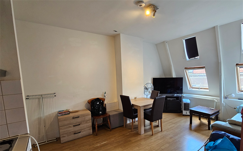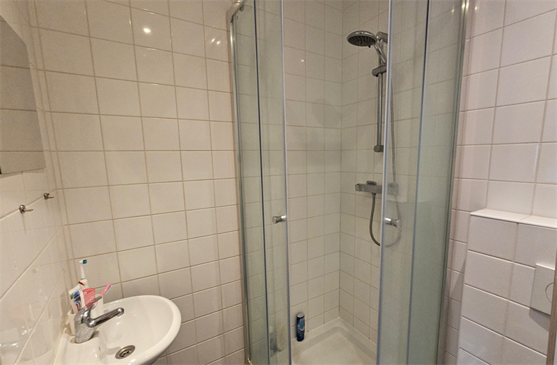 De keuken is voorzien van diverse inbouwapparatuur zoals een koelkast, afzuigkap en gaskookplaat. De slaapkamer kent een oppervlakte van meer dan 8m2. In de gemeenschappelijke hal bevindt zich een separaat toilet welke wordt gedeeld met de medebewoners..