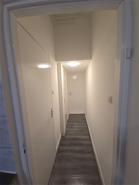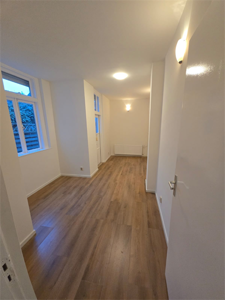 Na de gezamenlijke voordeur bevindt zich de woning op de begane grond van het pand.Indeling van de studio: - Nette en lichte woonkamer - Slaapkamer - Open keuken - Badkamer met douche, wastafel en wasmachineaansluiting. - Enkel het toilet is voor gemeenschappelijk gebruik..
