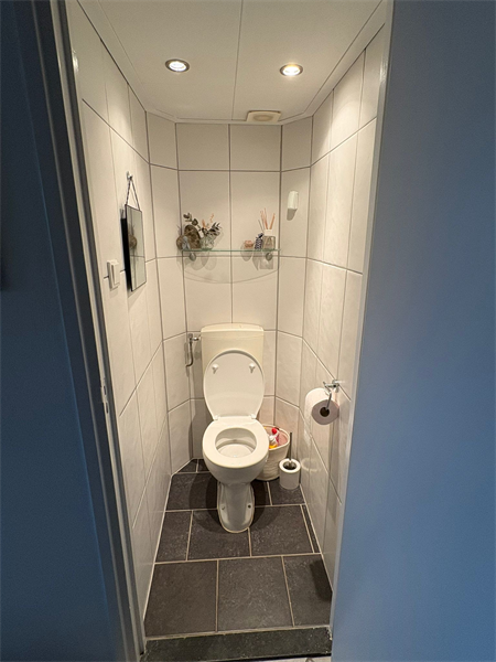 Geheel betegeld toilet. Bergkast met C.V. ketel. Woonkamer met balkon: vanuit de ruime doorzon woonkamer met de ligging op het zuiden, heeft men toegang tot het aan de voorzijde gelegen balkon, met een prachtig uitzicht op Echt en omstreken, waar men kan genieten van de avondzon.