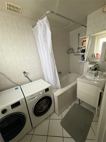 Keuken: De dichte keuken met mooie vloer is ingericht met een , aanbouwkeuken geplaatst in een wandopstelling. Als apparatuur is gekozen voor een en 4 pits gasfornuis en afzuiging Badkamer: De keurige badkamer is ingericht met een ruim bad en mooie wastafel met kastjes. Het is ook voorzien van een ruime inbouwkast. Slaapkamers: Twee slaapkamers (11,5 en 11m²) waarvan 1 met balkon.De vloeren zijn voorzien van laminaat.