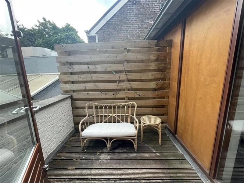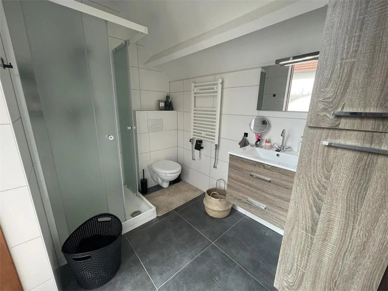Badkamer is modern afgewerkt met een zwevend toilet, wasbak met kast en een douche. Het appartement beschikt ook nog over een kleine dakterras..